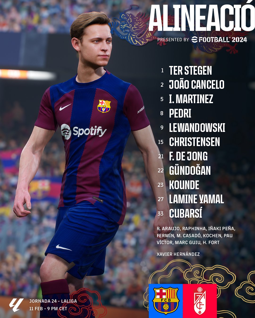 Source : www.barcablaugranes.comFC Barcelona on X: “๐จ BARรA XI ๐จ #BarรงaGranada https://t.co