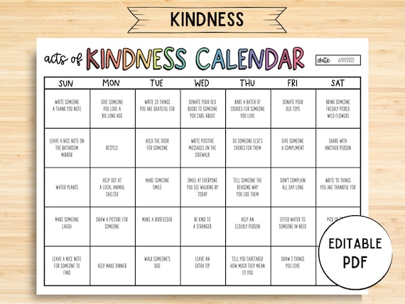 Random Acts Of Kindness Calendar 2024 Date – On February 17, 2024, the world pays it forward on, Random Acts of Kindness Day, and the tradition continues the week of February 13-19, 2024. I remember the first time an anonymous person in line . Each year, on February 17, people are encouraged to celebrate kindness and pay it forward in whatever way possible. The idea was the brainchild of the Random Acts of Kindness Foundation, which created .
